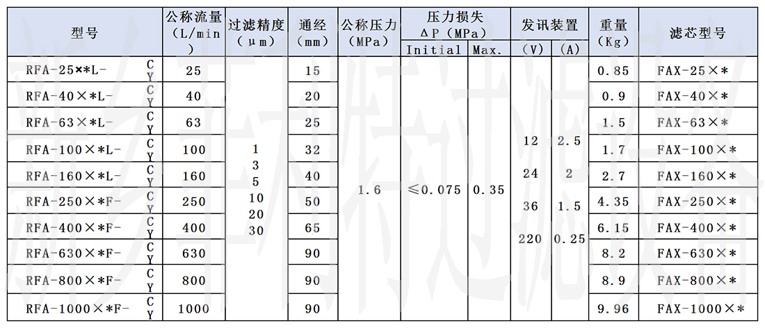 - 型號(hào):RFA系列液壓過濾器