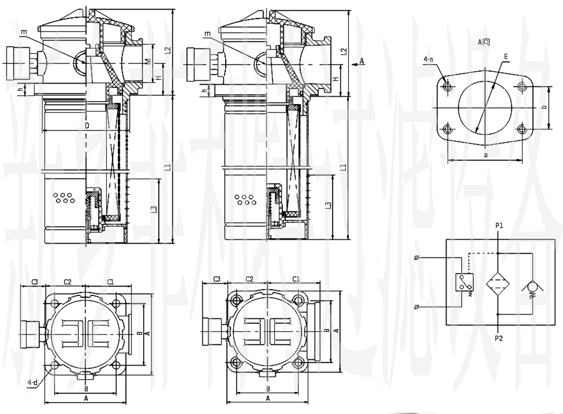 當(dāng)濾芯被污染物堵塞或系統(tǒng)液溫過低,流量脈動(dòng)等因素造成進(jìn)油壓力為0.35MPa時(shí),發(fā)訊裝置便發(fā)出訊號(hào)指示。應(yīng)及時(shí)更換濾芯或提高油液溫度。如此時(shí)不能馬上停機(jī)處理這些故障時(shí),設(shè)在濾芯下部的旁通閥自動(dòng)開啟工作(旁通閥開啟壓力為0.4MPa),以保護(hù)過濾器及液壓系統(tǒng)正常工作。