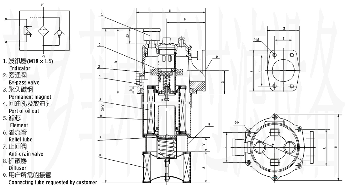 2、本過濾器配有永久磁鐵,可濾除油液中1微米以上的鐵磁性顆粒。