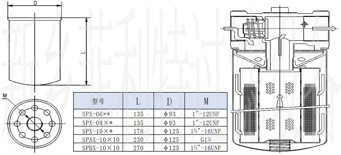 旋轉(zhuǎn)式管路過濾器 SPIN-ON LINE FILTER SERIES (一)特點 1、鋁合金濾頭 2、最高使用壓力0.7MPa 3、溫度使用范圍-30℃~90℃ 4、濾頭上設有安裝污染堵塞發(fā)訊器孔,以便檢測濾芯使用情況 (二)